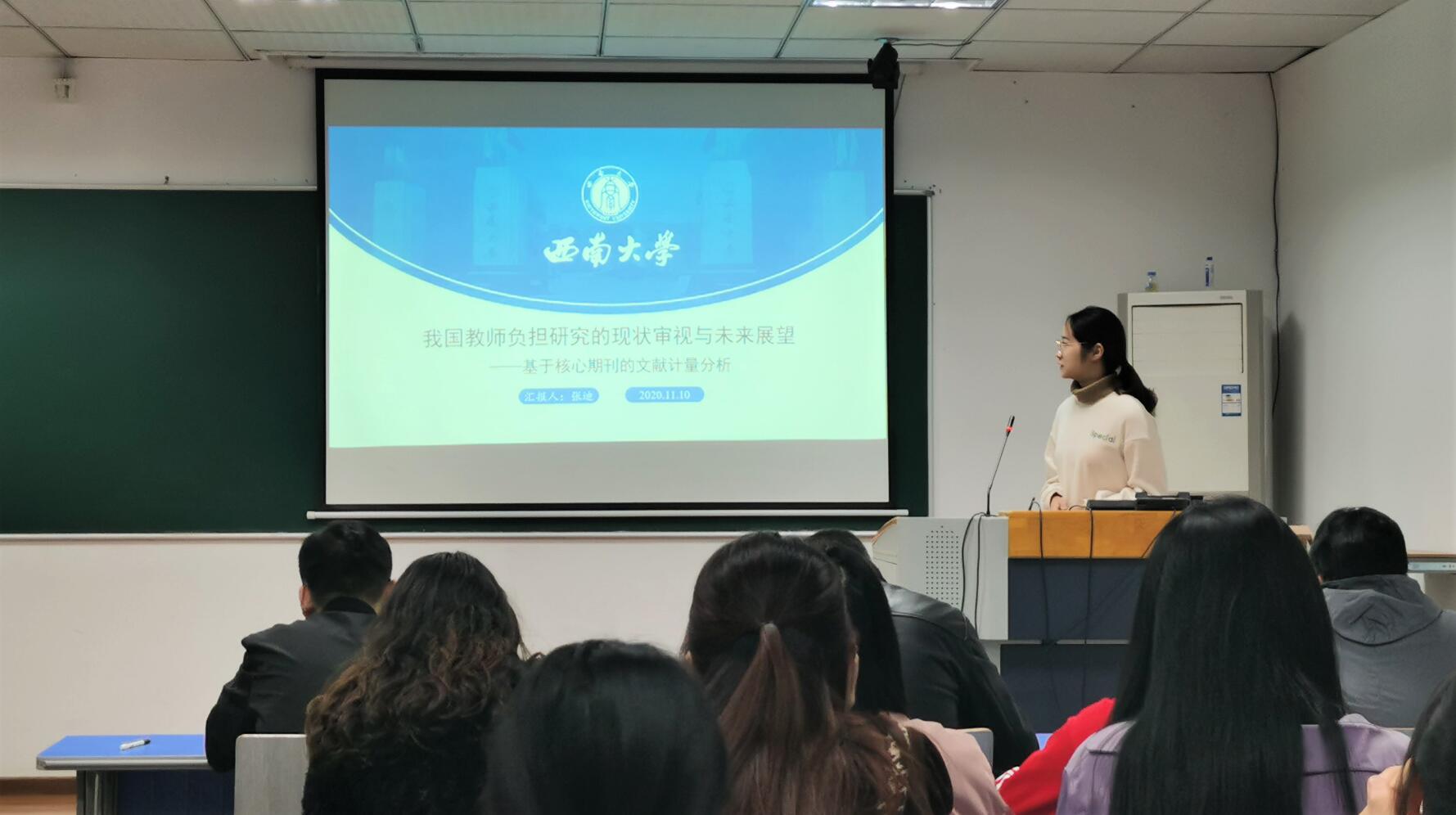 三位同学的学术汇报和老师们的精彩点评使同学们对“问题提出”教学、职业教育和教师负担的研究有了更加深入的认识,开阔了同学们的视野,极大的鼓舞了同学们投身教育研究的热情与自信心,也为学术研究和写作积累了经验。