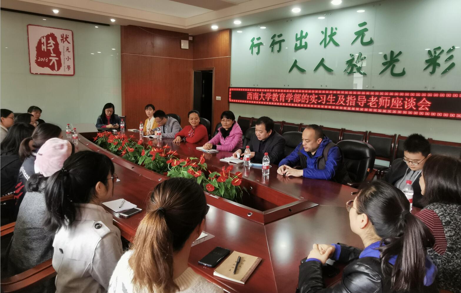 在状元小学,张晓校长、周春梅副校长等参加了座谈。指导老师们评价实习生有三“真”——工作认真负责、教学真挚热爱、交往真诚谦逊,对实习生踏实工作的态度表达了感谢、勤奋上进的品质表示了感动。同时,张校长和周校长对实习生的能力和素质给予了高度评价,认为其做到了认真、乐学、善思。