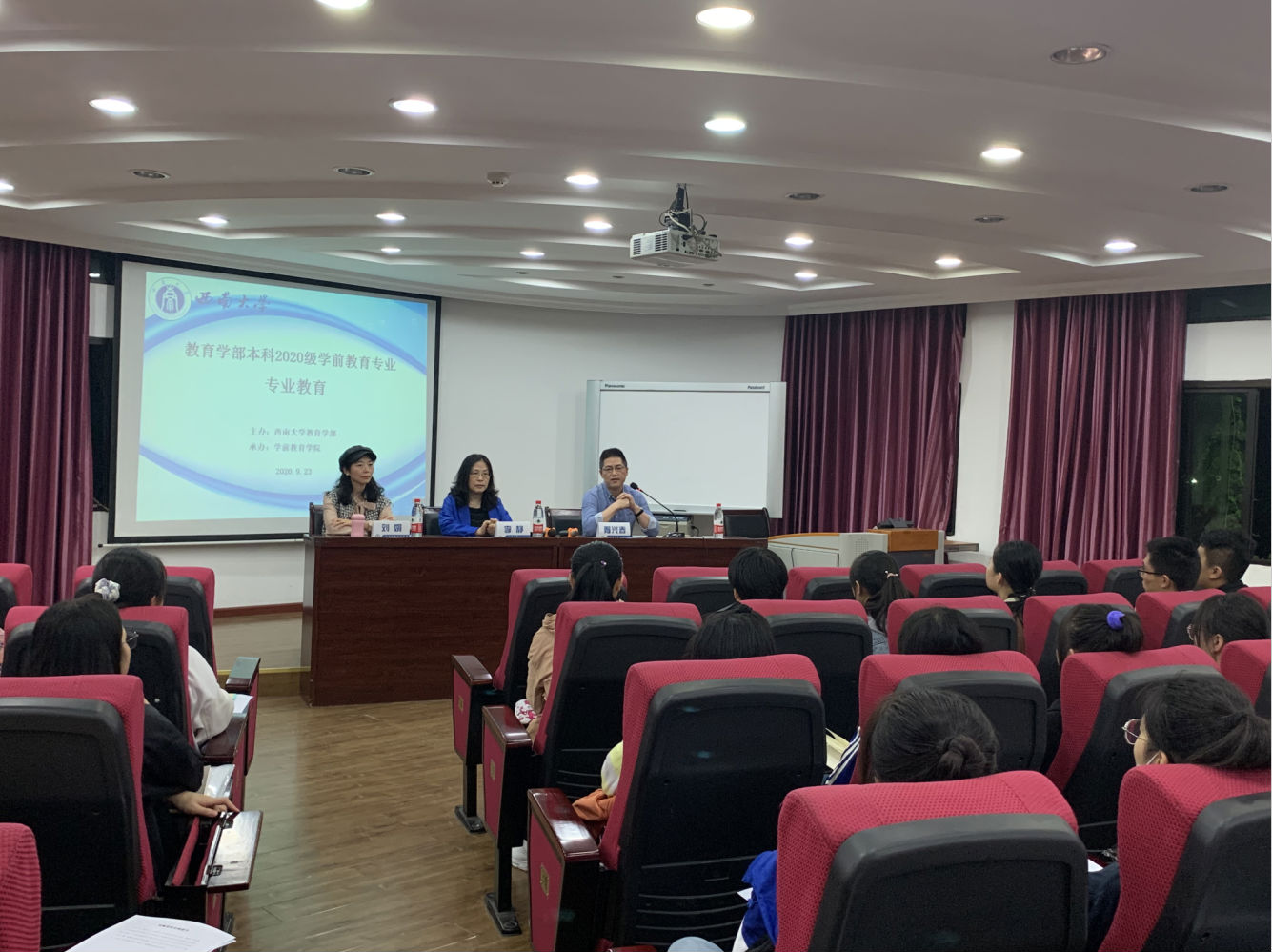 为帮助2020级学前教育专业新生尽快融入大学生活、了解学前教育专业及未来幼儿园教师职业的基本状况,学部于9月23日晚在田家炳306报告厅举行本科学前教育专业教育会。学前教育学院院长李静教授,常务副院长胥兴春副教授,365英国上市集团学前教育专业2005届毕业生、重庆市江北新村幼教集团保教主任刘娟,20级辅导员、学前教育1、2班班主任,以及20级学前教育专业全体同学参加了专业教育会。