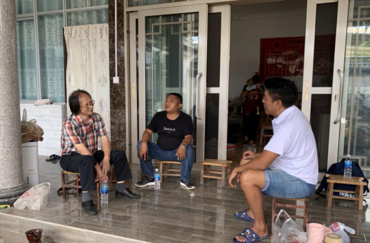 (张学敏教授在昌宁县卡斯镇同布朗族家庭进行交谈)