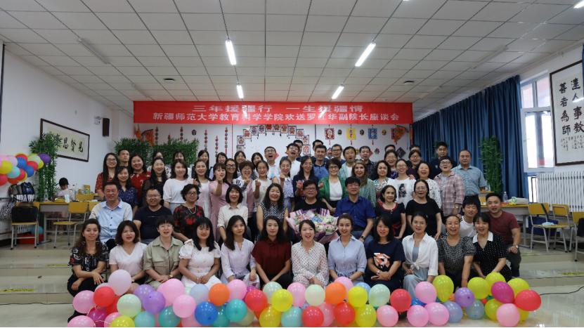 临别,新疆师范大学教育科学学院的老师们自发地精心筹备了一场“相送罗院长”的活动。座谈会上全体院领导,教师代表杨淑琴教授、程良宏教授等十余名老师纷纷发言,讲述三年来罗江华副院长为学校、学院所做的贡献,表达对罗院长的敬意。程良宏教授说:罗院长是兄长、学长、师长,从工作到学习科研再到生活情感他都给予了年轻人无微不至的关怀。研究生代表刘梦用鲜花向罗院长表达感恩之情。学院党委书记彭宏对罗江华教授的援疆贡献给予高度评价,赵建梅院长精心录制了“致罗院长”的演唱视频,学院男女教师现场合唱《送别》、《别知己》、《爱》,辅导员原创秦腔演唱《致罗院长》,青年教师原创诗歌《援疆是一首歌》都表达对罗院长的感谢;学院的小伙子、姑娘们为罗院长送上精心准备的三层蛋糕,纪念罗院长与学院共度的三年美好时光;现场老师共同许下对罗院长美好的祝愿。