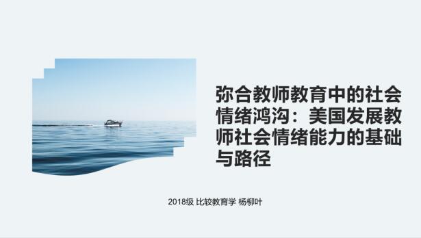 杨柳叶同学就《弥合教师教育中的社会情绪鸿沟:美国发展教师社会情绪能力的基础与路径》为题展开自己的学术报告,从背景、基本内容、现实基础、实施路径四个方面探讨教师教育中的社会情绪鸿沟。提出完善教师专业标准,纳入社会情绪能力要求;增加职前训练,培养职前教师社会情绪能力;提供专业培训,强化在职教师社会情绪能力;推动教师评估,促进教师的自我反思与提升四条建议。