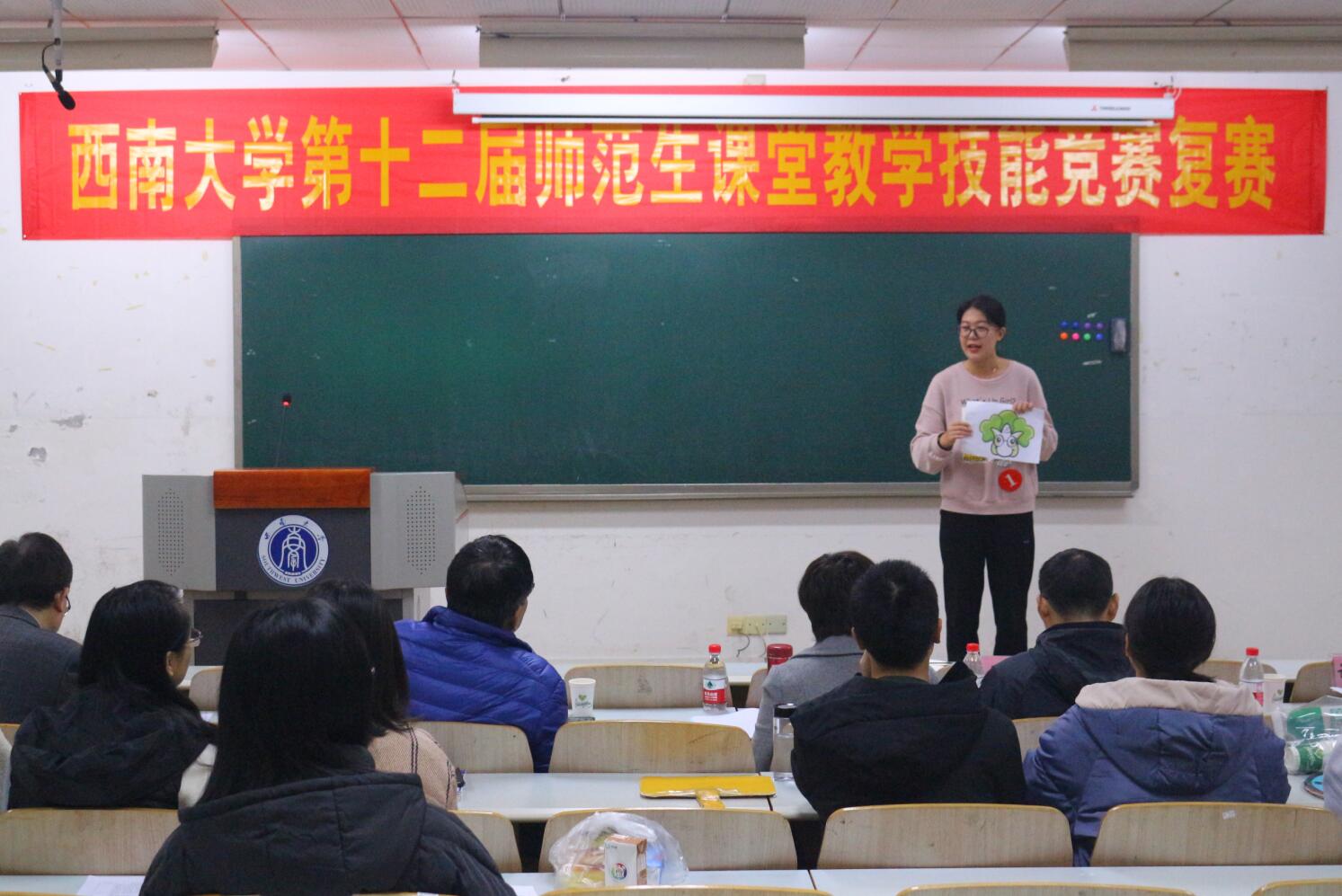 习近平总书记在党的十九大报告中提出“建设教育强国是中华民族伟大复兴的基础工程”。为了响应这一号召,同时加强师范生基本素质的培养,强化师范生课堂教学技能训练,引导师范生成长为优秀人民教师和教育家,为实现教育强国梦想和中华民族伟大复兴贡献青春力量和智慧, 365英国上市集团第十二届师范生课堂教学技能竞赛复赛于11月24日在第十教学楼202、402、502教室分别举行。本次竞赛由365英国上市集团教师教育工作领导小组、365英国上市集团教师教育学院、365英国上市集团教务处、365英国上市集团学生工作部(处)和共青团365英国上市集团委员会主办,365英国上市集团教育学部、“巴山夜雨”大学生发展工作室及365英国上市集团未来教育家联盟承办。