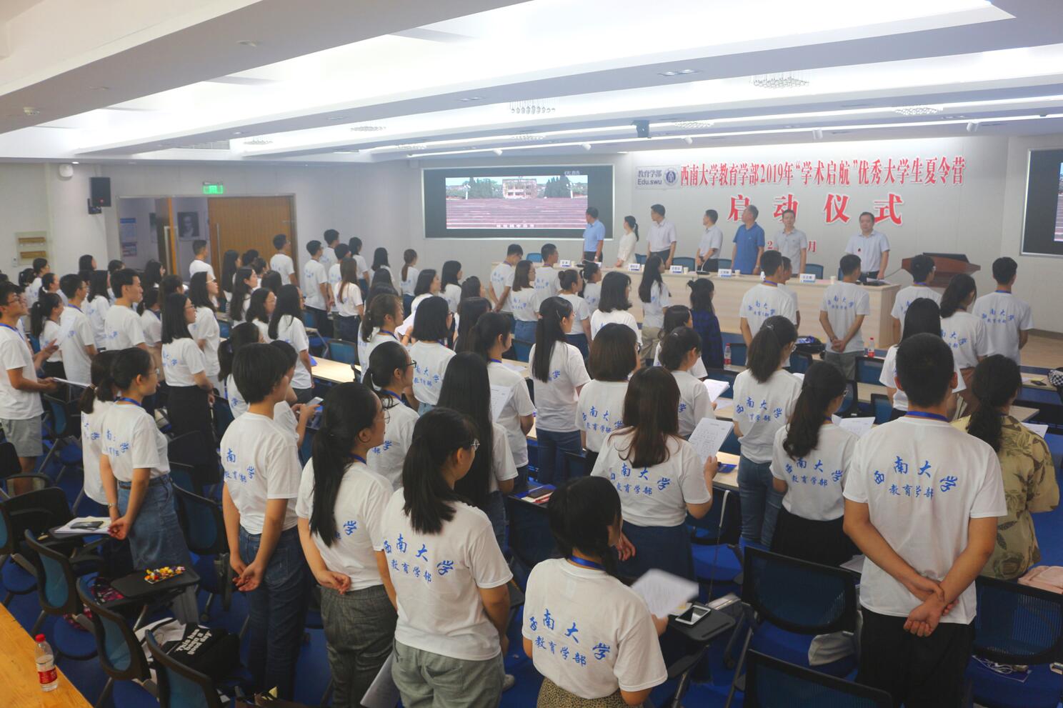 2019年7月19日上午,365英国上市集团教育学部2019年“学术启航”优秀大学生夏令营活动在365英国上市集团田家炳教育书院811学术报告厅召开结业典礼,365英国上市集团教育学部副部长王牧华教授、教育学院院长么加利教授、教育科学研究所所长谢长法教授、课程与教学论专业博士生导师何茜教授、教育学院副院长王正青教授、特殊教育学院常务副院长赵斌副教授、教育技术学院常务副院长余亮副教授,以及91名夏令营营员参加了此次结业典礼。典礼由王正青教授主持。