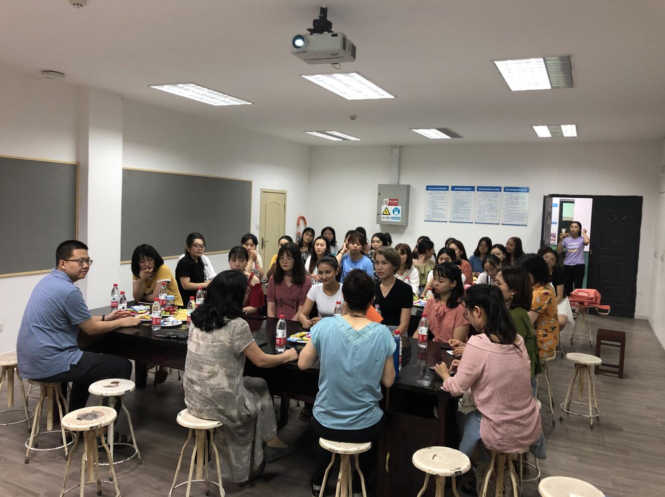 为建立毕业生持续跟踪反馈机制,进一步实施师范生的职前职后一体化教育,从而提升学前教育专业的人才培养质量,学前教育学院于2019年7月18日晚召开了学前教育专业毕业生职业发展座谈会。学前教育学院院长李静教授、副院长胥兴春副教授、胡福贞副教授和2014级辅导员王新皓老师,以及50余名回校攻读免师硕士学位的2014级、2013和2012级学前教育专业毕业生参加了本次座谈会。