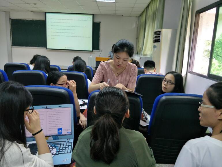 代老师对于疑难重点进行翻译、解释说明,帮助学生对知识的吸收