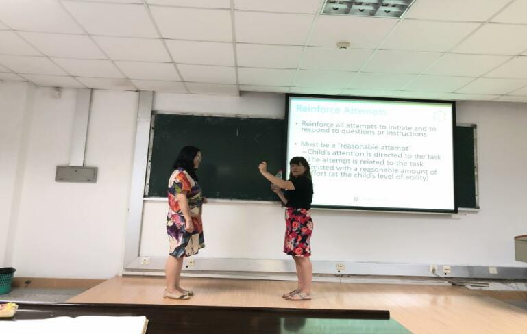 在理论讲解的过程中,Randolph教授也让同学们根据自己假定的无语言的自闭症对象来设计相应的PRT实施计划,使得同学们在理论与实践两个层面对PRT有了更加深刻的理解,这些知识对于即将成为特殊教育教师的我们来说非常宝贵,希望在未来的工作岗位上能够运用这些知识去帮助更多的自闭症孩子。
