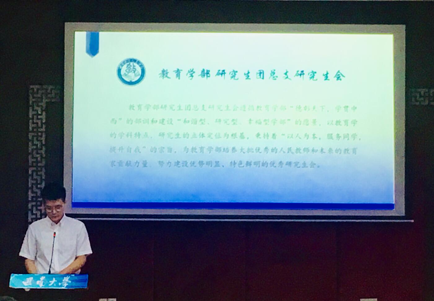 在此次汇报中,刘恩康同学主要从研究生团总支研究生会的基础建设、特色活动、校院两级研会共建、社会影响力建设四个部分展开。他提到,在基础建设上,教育学部研会采取了“1+6”制度管理方式,从横向和纵向两个方面最限度保障了研会运行的规范性和高效性。同时,为了提升研究生干部的理论修养和使命感、责任感,研会充分利用红色教育资源展开干部素质拓展活动。同时,研会以经验分享的形式召开入党推优培训会推进团支部工作,以思想学习的方式让两会精神真正指引学部研会成员前行。