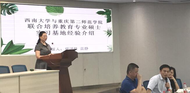 重庆第二师范学院学前教育学院夏泽胜书记首先就基地专业研究生的实践情况进行了介绍,雷静老师以“爱在学前,最美南山”为主题进行经验分享,围绕“目标明确,运作规范,特色明显,成效显著”具体阐述,并着重介绍其“3+1+1”运作模式、“1+1+N”的指导模式以及“超级环、品学圈及学术沙龙”的活动特色。