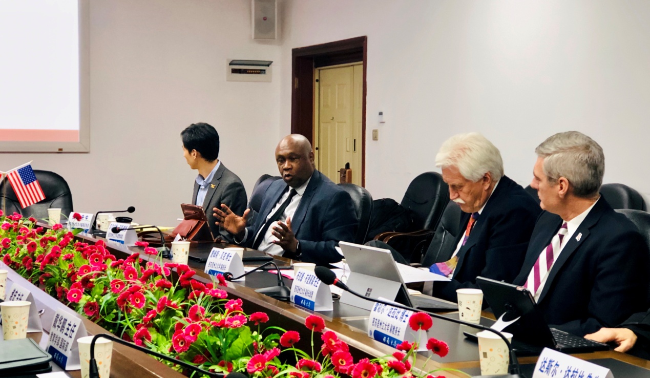 随后,密苏里大学副校长詹姆斯·贝克博士为大家介绍了密苏里大学的发展历史和办学特色,期待两校未来有良好合作。然后,美方教育学院咨询与特教系的系主任詹姆斯·萨特菲尔德博士(Dr. James Satterfield)介绍了本次联合培养博士项目的相关计划内容,并详细解答了我方提出的问题,双方就本次合作的细节内容进行深入的沟通交流。