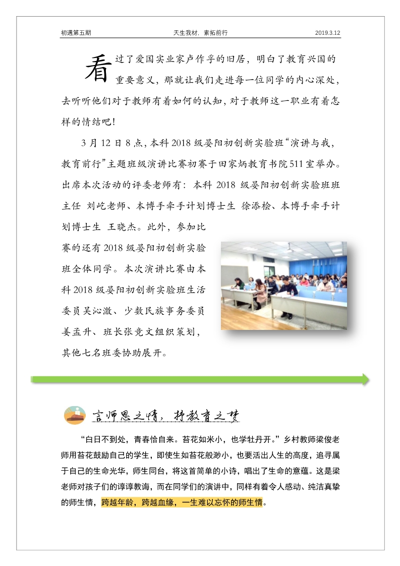 本科2018级晏阳初创新实验班班刊《初遇》第五期