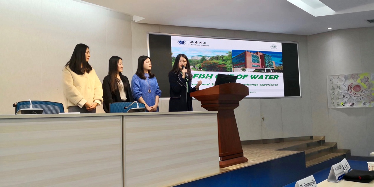 接下来,新西兰UW项目、美国KU项目及美国MSU项目的访学同学们分别就各自在国外的学习、生活、文化等方面的宝贵经历与丰富收获做了全英文汇报。同学们的汇报内容详实、图文并茂、精彩纷呈,赢得台下阵阵掌声。随后,国际处的谢老师对学校2019年最新访学政策进行了简要介绍。