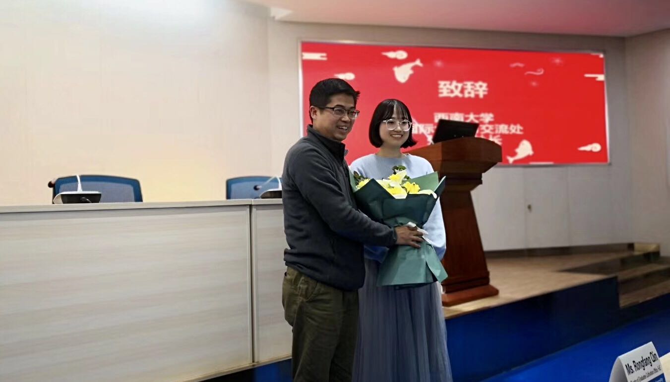首先,王部长致辞,对校国际处张处长对学部访学项目的大力支持表示衷心的感谢,强调访学经历对人生成长的价值与意义,希望教育学部的同学们能够积极参加各项访学活动。随后,张处长讲话。他强调,参加国际交流访学对于学生生涯是一个不可多得的好机会,这是学校国际交流事业的不断发展的成果。他还肯定了教育学部对于国际人才培养、国际交流合作项目的精准定位与大力投入,也希望同学们能够更多的参与含金量更高的交换项目,例如学分交换项目及双学位项目等。张处长表示,学校国际处将继续在政策、经费等方面全力支持学部的国际化工作,期待学部国际化更大的发展。为表达学部的感激之情,同学代表为张处长献上鲜花,再次感谢国际处对学部的支持与关爱。