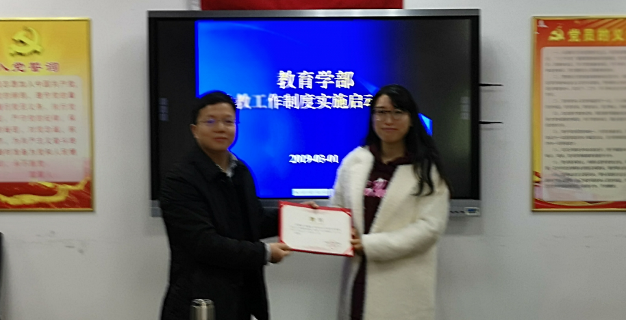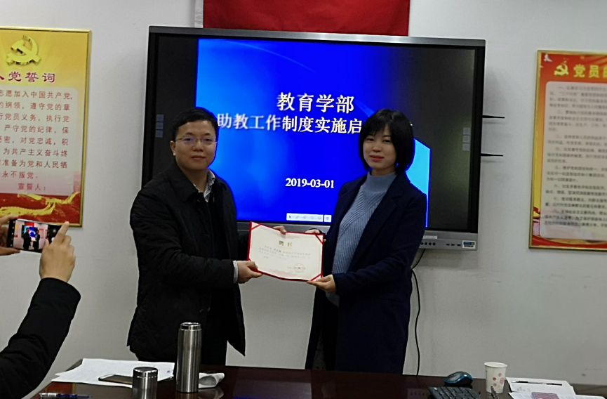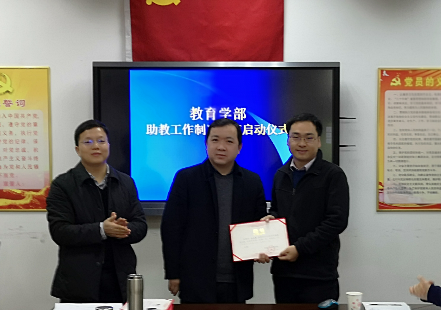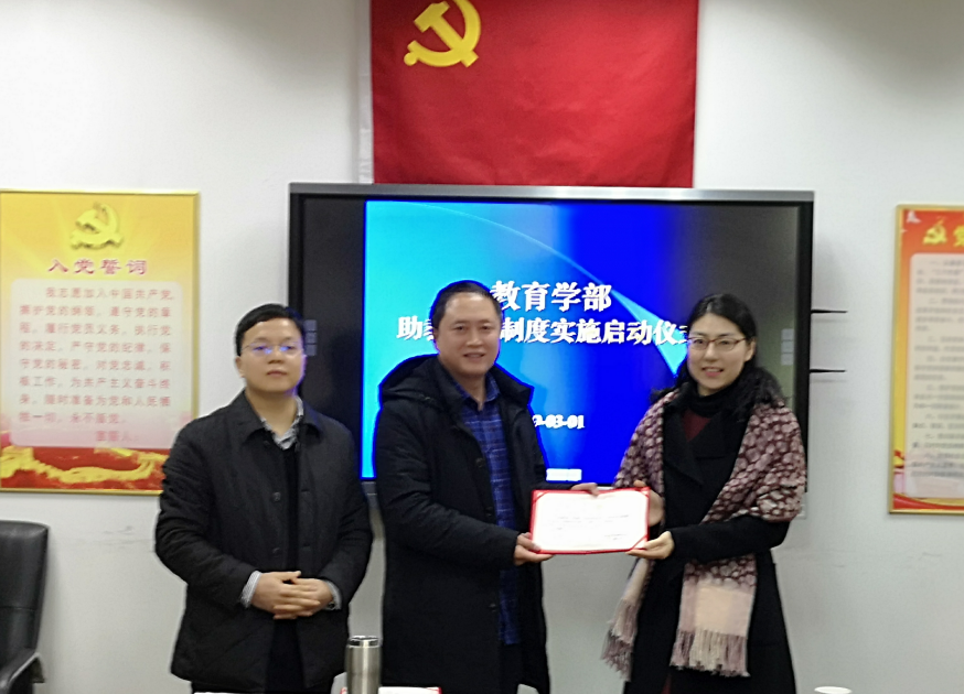 在启动仪式上,副部长彭泽平教授首先从助教制度的宗旨、目标、助教工作基本任务、助教指导教师的职责、助教工作的考核、助教工作的管理几方面介绍了学部的助教工作方案;之后,彭泽平教授代表学部对助教指导教师发放了助教指导教师聘书;聘书发放后,指导教师代表唐智松教授和青年教师代表余璐老师先后发言,在发言中,两位老师分别分享了各自的感受并表态将全力投入、做好助教工作,完成既定任务,达到预期目标。