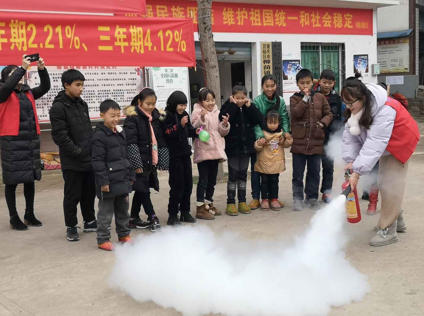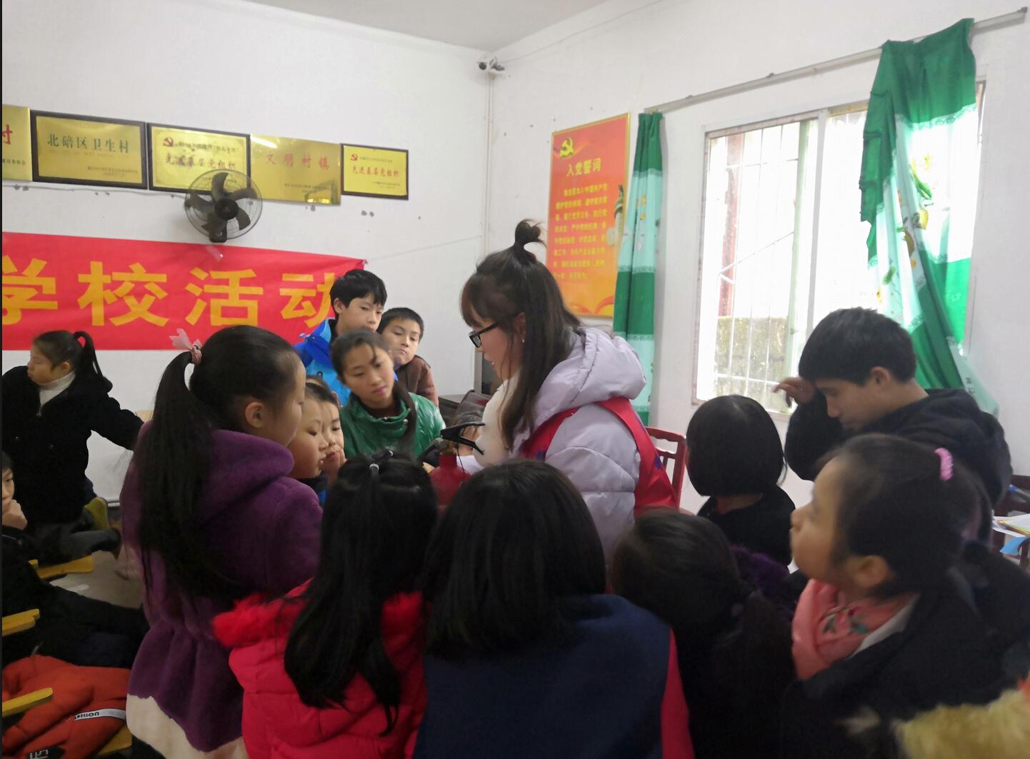 活动开始时,首先由志愿者李珊开展消防安全主题活动,她在活动室给孩子们介绍了怎样避免火灾,以及遇到火灾时应该采取哪些有效措施来减轻伤害。紧接着,她带领孩子们到室外演练了如何使用灭火器。在中途休息的过程中,志愿者杨亚男结合自身的学习经历和将要过春节的实际情况,带着孩子们学习了《过新年》这首歌,并把孩子分成小组进行歌唱比赛,有芒果组,草莓组,苹果组,这使得孩子们学习热情高涨。然后,她以《悲伤逆流成河》中的电影片段引入了校园霸凌的话题,并以“游戏提问”的形式和孩子们进行了互动交流,告诉孩子们在学校不仅要意识到校园霸凌的严重危害,同时也要学会维护自己的权益,保护自己,要与同学和睦相处,珍爱自己的生命。