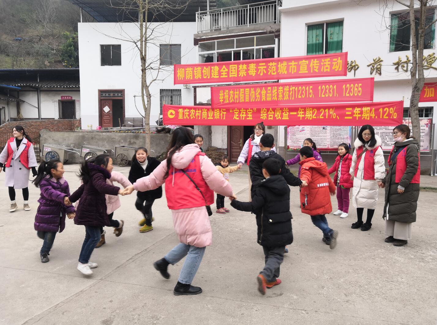活动正式开始前,志愿者带领孩子们在村委会广场上进行了破冰活动,包括连环圈大作战、老鹰捉小鸡、老狼老狼几点了等一系列能够激发小学生兴趣的活动,这些小游戏不仅唤醒了孩子们的身体,还削减了他们对志愿者的陌生感,为活动的顺利开展奠定了基础。