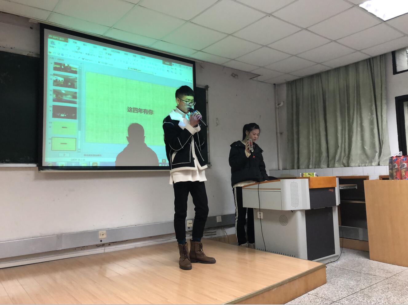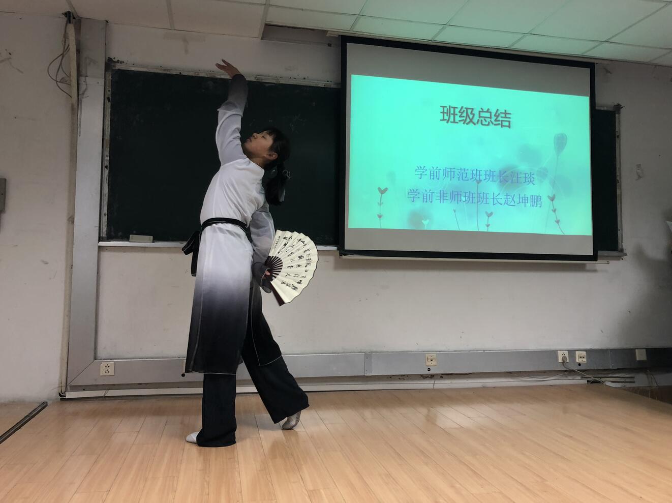 2018年12月28日下午,教育学部2018级本科学前教育专业公费师范班和学前教育班在田家炳教育书院405教室,联合举办了期末班会暨新年团年活动。班主任王伟老师、余璐老师应邀参加,两个班级全体本科生积极参与。本次活动由赵坤鹏、汪琰同学主持。