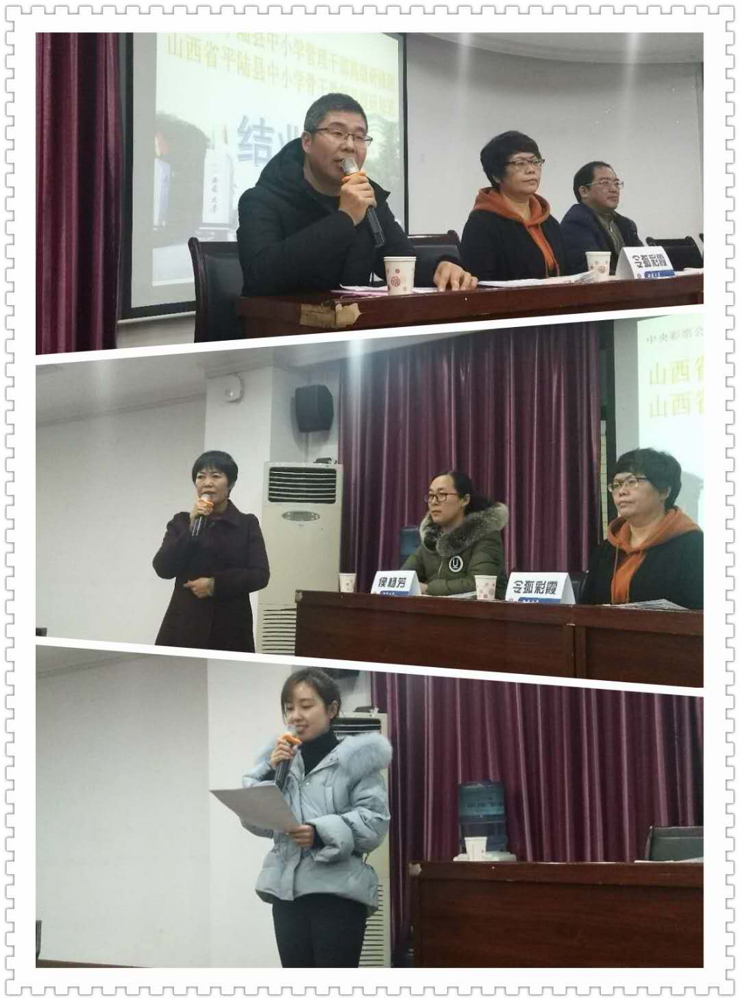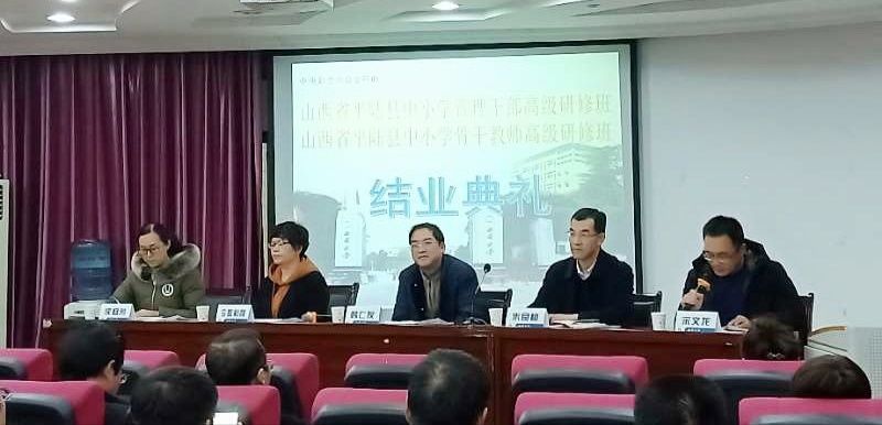 2019年1月8日下午5:00,山西省平陆县中小学管理干部和中小学骨干教师两个高级研修班在教育学部306报告厅隆重举行结业典礼。典礼共有五项议程:1.两个研修班班长分别总结;2.两个班学员代表分享培训心得;3.委托方领导总结讲话;4.教育学部韩仁友书记总结讲话;5.颁发结业证书。