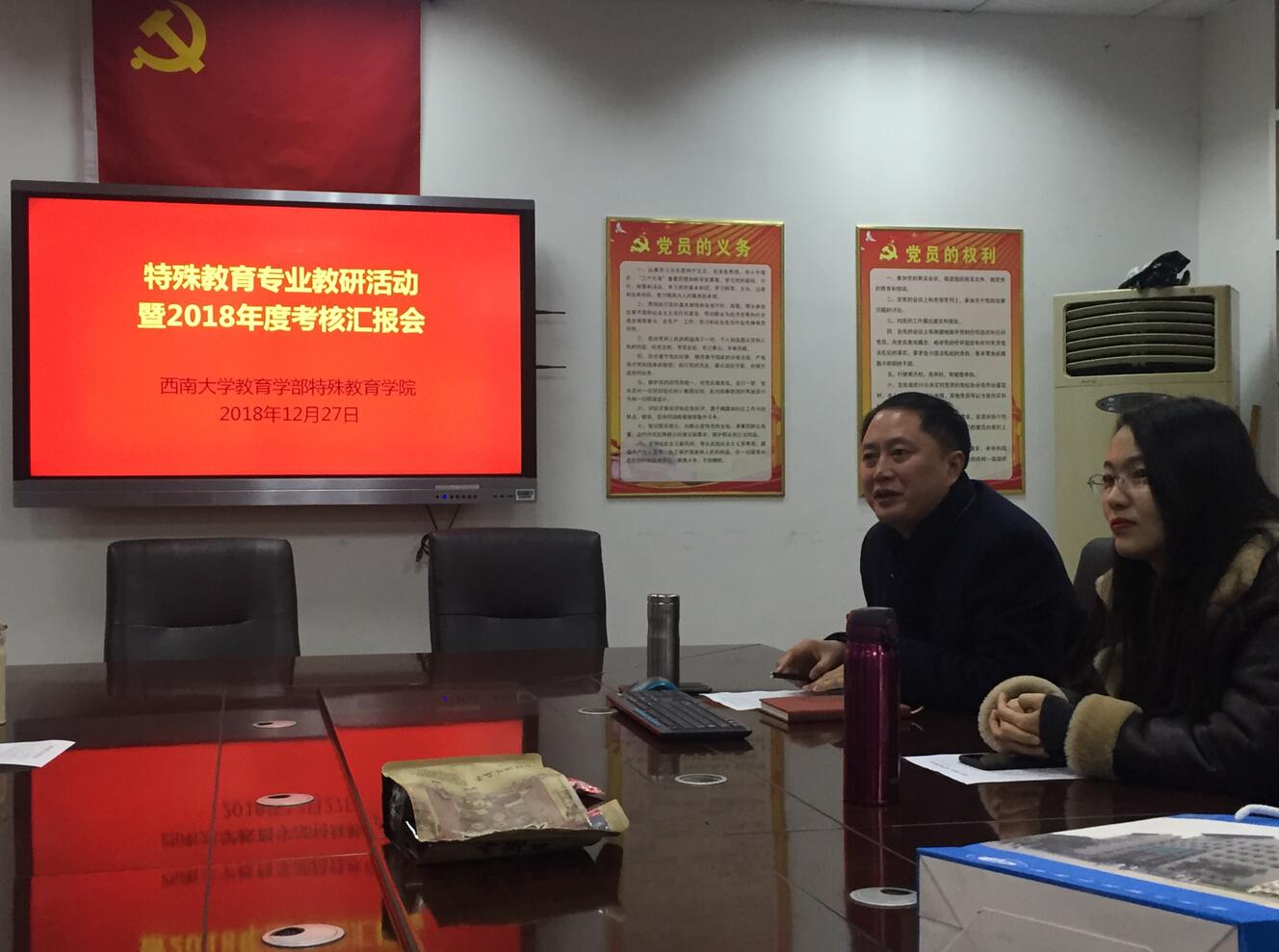2018年12月27日上午,特殊教育学院在315会议室召开了专业教研活动暨2018年度考核汇报会,会议由院长赵斌副教授主持。