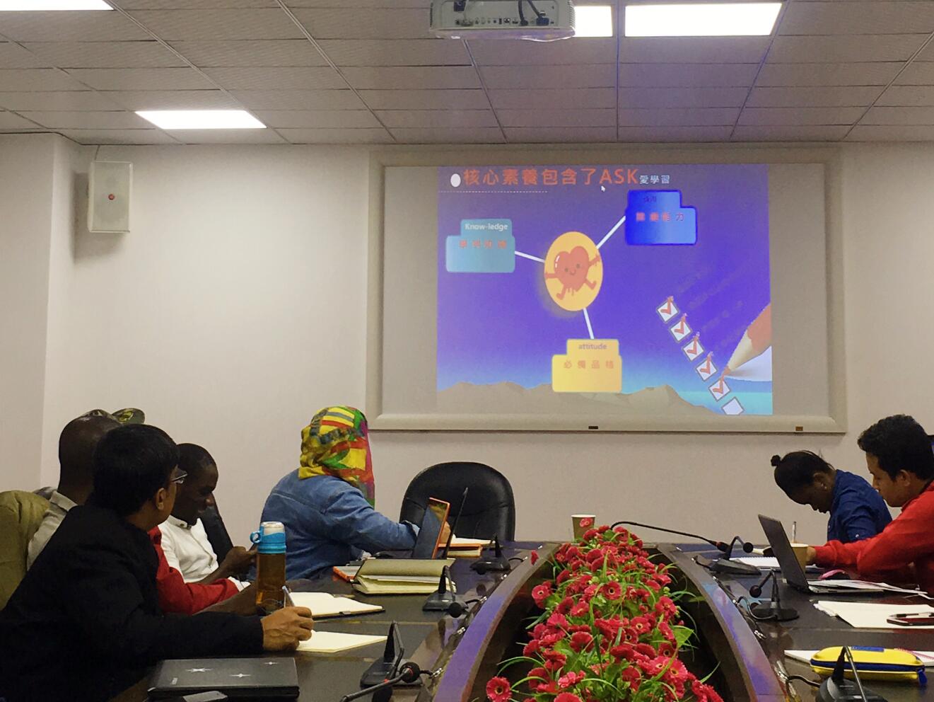 蔡教授给留学生们深入介绍核心素养中包含ASK(attitude、skill、knowledge)三方面的内容,他讲解到三个方面的相互关系与作用,以及如何在课程改革中实施三方面的改革。