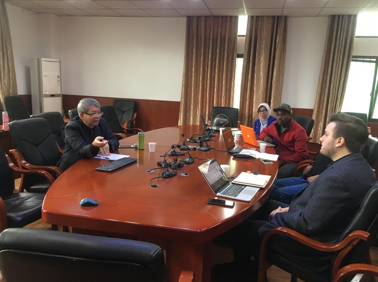 蔡教授分别与每一位同学,就他们研究进行了深入、细致的讨论,指出其中存在的问题或疑惑,帮助大家进一步理清思路,也提出了一些有益建议。通过本次座谈,留学生同学被蔡教授敏锐的视角、清晰的思路、深厚的学术功底所折服,大家收益颇多。