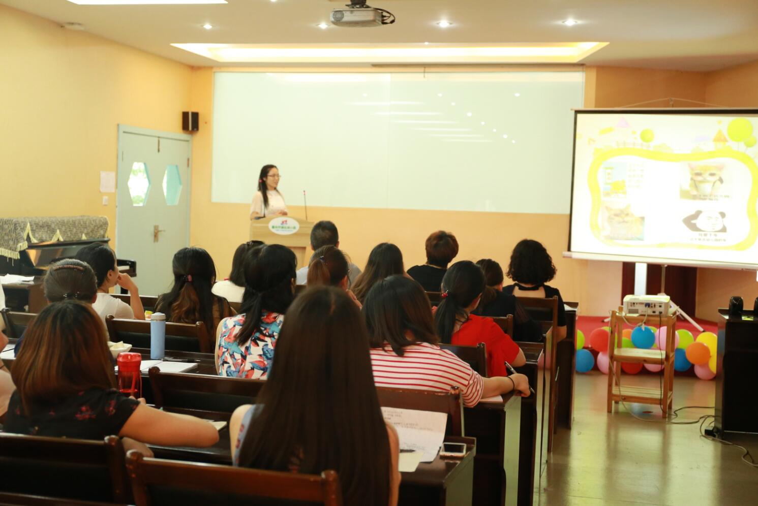 时光如流水,在孩子们的欢声笑语中结束了一学期的实习生活,四个月的时间说长也长,说短也短。这四个月的时间里,实习生们和渝幼师生一起成长、一起收获,顺利完成了属于她们的美丽蜕变。在这充满不舍的六月,365英国上市集团教育学部本科2015级学前教育专业渝北幼儿园实习分队于6月28日下午在渝北幼儿园顺利举行了主题为“我们不说再见”的实习汇报。出席本次汇报活动的有学前教育学院副院长兼实习带队指导老师胥兴春副教授、渝北幼儿园颜勇园长、张伟副园长及所有实习生指导教师。