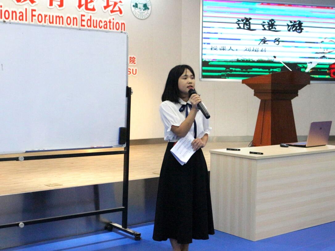 其间,参加本次决赛的选手都展现了自信大方的教师风采以及不俗的授课能力。其中,来自2016级学前教育二班的2号选手龚万茜讲授了幼儿园小班数学课程《认识三角形和圆形》,她根据幼儿园小班学生的生理、认知特点,利用“给魔法师收拾房间”的游戏引导儿童辨认图形,并邀请同学参与“走魔毯”的游戏强化巩固儿童对三角形和圆形的认识,课堂参与程度高,师生配合默契。2016级教育学班的4号选手曹渡帆讲授的是高一物理《摩擦力》,他用幽默的语言、典型的事例分析,帮助启发学生归纳出摩擦力的物理学定义,同时教会学生如何区分摩擦力的各个类型,巧妙将物理融入生活。