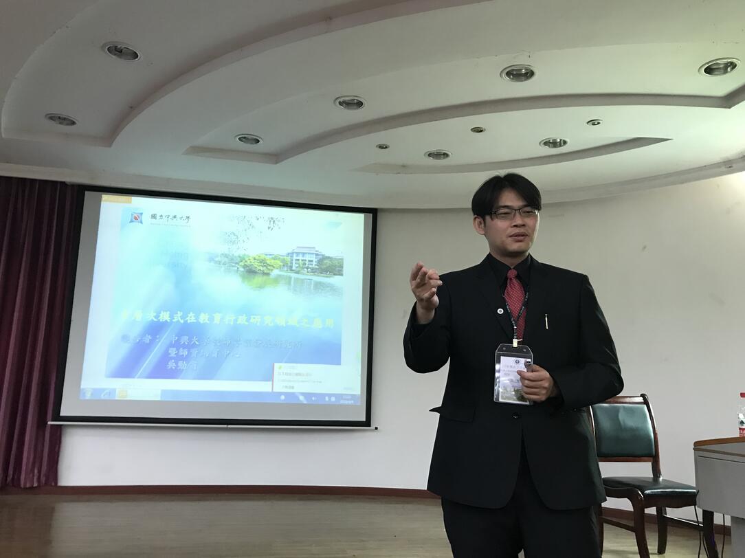 吴劲甫教授的报告主题是《多层次模式在教育行政研究领域之应用》。他认为在台湾教育行政与管理研究领域中,多层次模式(multilevel modeling)是量化研究中备受重视的统计分析方法。近年来,教育行政管理研究者已逐渐意识到传统单一层次分析之问题与限制(如违反统计独立性假设、层次推论谬误、无法适切处理多层次理论模式),从而开始用多层次模式方法开展研究,让研究结果更合乎统计学理的要求。他以生动的比喻阐释了多层次模式的学理,并以“校长领导对学生阅读素养的影响力”为例,结合问卷调查、次级资料分析、后设分析等研究,详加说明了多层次模式的运用。吴教授的学术报告深入浅出不失专业、生动形象不失严谨,让参加报告会的同学们获益良多。