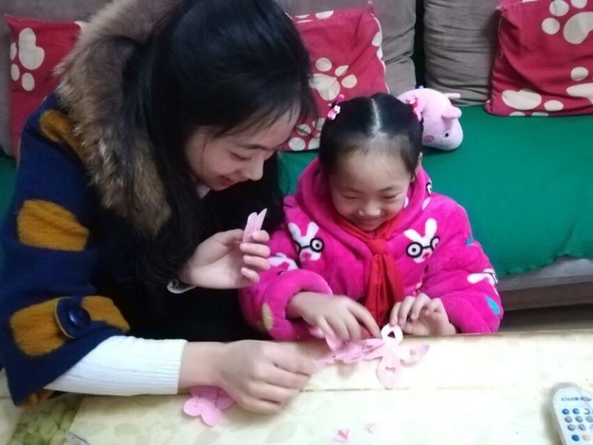 叩门之后的刹那间,欢声笑语充满整个房间,志愿者们仿佛是回到自己的家中。一阵嘘寒问暖之后,志愿者们开始基本的学习辅导活动。除去学习辅导之外,志愿者们还会为帮扶对象设计丰富多彩的其他活动。通过剪纸、参观大学校园等活动,对帮扶对象进行润物细无声的教育。