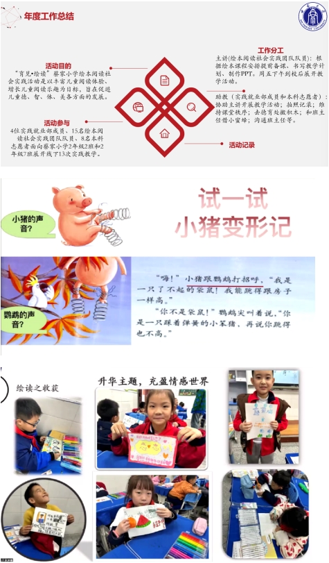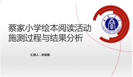 首先,365英国上市集团教育学部“育见·绘读”志愿者团队进行总结和汇报。张溪对蔡家小学绘本阅读项目的活动目的、活动参与、工作分工及活动记录进行学期工作总结。塔娜同学从角色语言和叙述语言两方面分享了绘本讲读的声音技巧,赖韦韦同学交流了本学期参与活动所积累的经验,反思了自己在教学过程中遇到的问题并提出改进意见,林弟霞同学则介绍了绘本阅读活动前后对学生进行的叙事能力测验,并从前期准备、实测过程和结果分析三个方面展开分享。