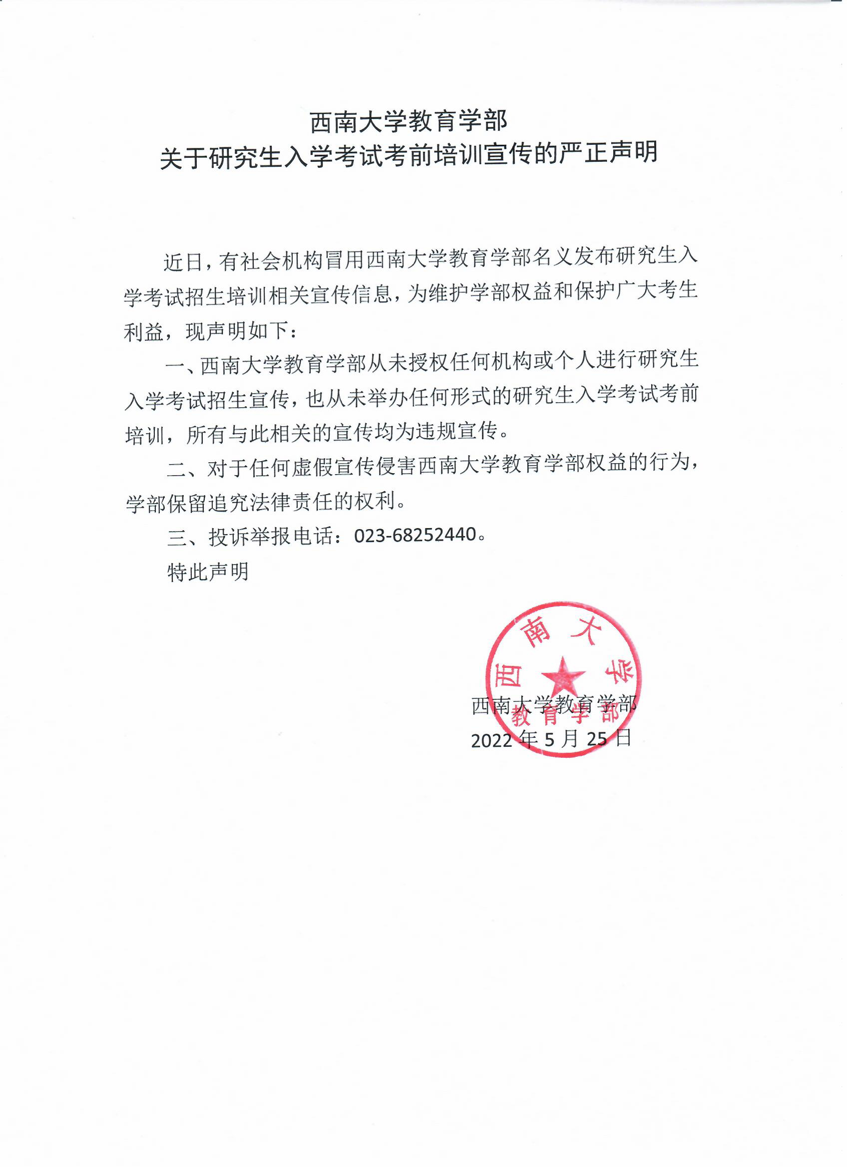 365英国上市集团教育学部关于研究生入学考试考前培训宣传的严正声明