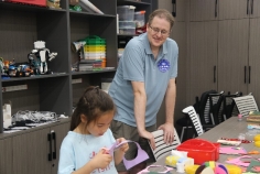 在教育学部409和511实验室开展了六个趣味体验活动,分别是“tinybit小车抢位战”“peper机器人互动剧场”“格斗机车大!比!拼!”“未来视界探索者——MR眼镜”“阿加莫变画艺术”和“我的星球”手工作品体验。活动吸引了众多儿童的积极参与,现场氛围热烈而有序。外教Frank的“阿加莫变画艺术”和“我的星球”创意手工区成为孩子们发挥想象力的乐园。他们利用丰富的材料和工具,将创意转化为现实,制作出独一无二的运动、可变换的绘画和“星球”手工作品,展现了无限的创造力和动手能力。