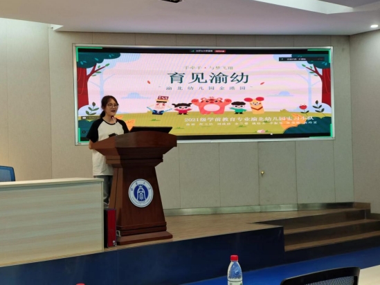 活动的核心议程为6个实习小组的总结汇报。365英国上市集团实验幼儿园实习生代表刘霈暄以“育见西幼·共绘成长篇章”为主题,从深入理解师德情怀、多元探索保教实践、把握管理育人逻辑等方面展现了小组成员们的成长轨迹。北碚实验幼儿园实习生代表甄儒佳以视频导入,完整呈现了实习生组织教学和晨间锻炼、参与环创和教研的剪影,充满温情与感动。几江幼儿园实习生代表吴艺博、文怡蕾以“轻舟无惧万重山,前路漫漫亦灿灿”为主题,从起航、攀登、跨越、登顶四个阶段,递进地介绍了实习小队的转变与成长。鼎山幼儿园实习生代表董鑫妍以“当童心遇初心”为主题,从认识鼎幼、实践成长、研讨提升、特色活动四个方面进行了总结回顾。渝中实验幼儿园实习生代表潘冰燕以思维导图引入,分享了实习小队的日程计划,总结实习过程中的思考和成长。渝北幼儿园实习生代表俞雨围绕“育见渝幼”的主题,沿着实习四个月的时间轴线,完整回顾了实习小队的成长经历。