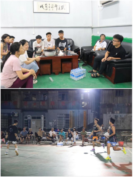 调研小组还对盖宝村篮球代表队的3名年轻男性球员进行深入了访谈,详细了解了贵州火爆国内外的“村BA”篮球赛事。除此之外,为深刻感受盖宝侗寨的篮球文化,每晚,实践团成员都会跟随寨上的男女老少,齐聚在西迷村球场,一同观看村民们自发组织的精彩球赛,体验到了当地“人人参与篮球,人人健康运动”的篮球氛围和淳朴热情的民风民情。另外,实践团还联系了重庆市“蜗牛羚羊”篮球训练营,积极促成其与盖宝侗寨的篮球联谊,为城乡篮球交流事业贡献一份力量。