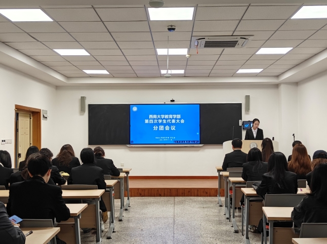 最后,李晶晶老师代表学部团委对教育学部第四次学生代表大会的圆满举行表示热烈祝贺。她表示,希望各位新当选的学生委员会委员们铁肩担重任,不负使命、不惧困难,尽己所能推动学生组织工作创新性发展。同时,期待各位学生代表积极承担自己身为“代表”的责任,传达学生心声,助力学部进步,为学部“双一流”学科建设贡献青春力量,谱写崭新篇章。