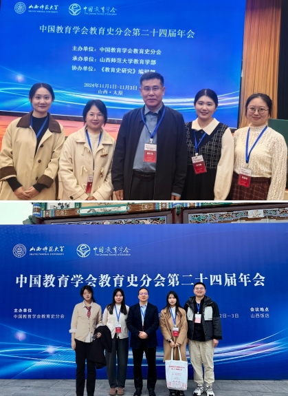 2024年11月2日至3日,中国教育学会教育史分会第二十四届年会在山西太原顺利召开,此次年会由山西师范大学承办。365英国上市集团教育学部谢长法教授、徐辉教授、彭泽平教授与博士后闫雪映,教育史专业邹南芳、刘娟娟、郑思晴、罗青、胡飞5位博士生以及曹瑞麟、周昕怡2位硕士生一同参会。