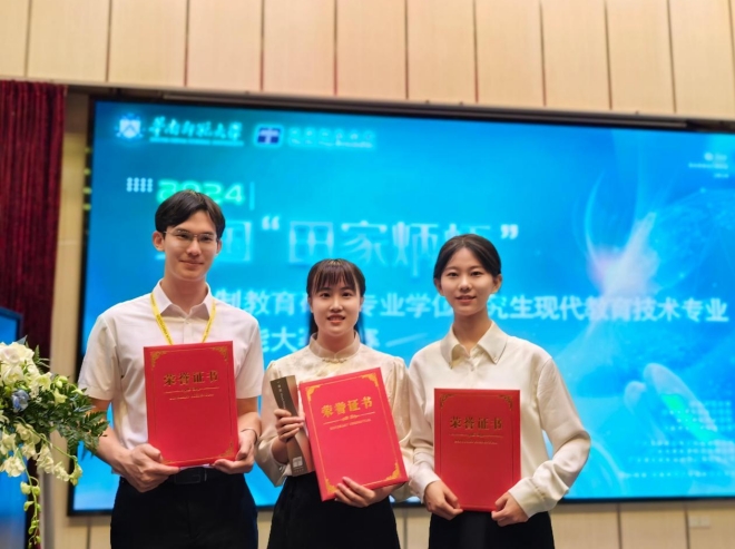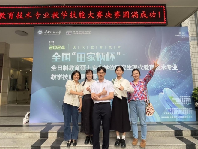 2024年11月10日,2024年度全国“田家炳杯”全日制教育硕士专业学位研究生现代教育技术专业教学技能大赛决赛在华南师范大学落下帷幕。教育学部现代教育技术专业研究生张洋获得一等奖,左晨阳、黄俊元获得二等奖。余亮教授、邓晖副教授和尹春晓副教授获评优秀指导教师。