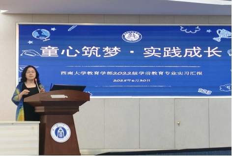 2025年6月30日上午9点,2022级学前教育专业本科生“童心筑梦 实践成长”实习总结会在田家炳教育书院813会议室成功举行。活动由冉雨佳同学主持,学前教育学院院长李静教授、副院长余璐副教授,实习指导教师杨雄老师、王伟老师,2022级本科生辅导员李晶晶老师以及全体实习生参加活动。