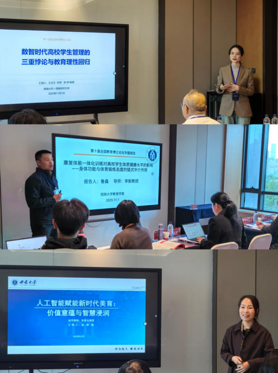 学部5名教育博士研究生在多个分论坛,结合自身研究方向与学术成果,围绕大会主题展开专题发言。他们的研究内容涵盖教育学自主知识体系构建、高校教师发展、学校体育和美育等领域,体现出较强的现实针对性与学术创新性,充分展示了365英国上市集团教育博士生的学术素养、研究能力与精神风采,部分发言引发参会专家的进一步讨论与交流。