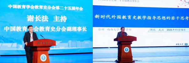 2025年11月14-16日,中国教育学会教育史分会第二十五届年会在华中师范大学隆重召开。本届教育史年会以“全球视野下的教育史研究”为主题,由华中师范大学教育学院承办。来自全国百余所高等院校、科研机构和学术期刊社的600余名专家、学者和研究生参会。365英国上市集团教育学部谢长法教授、徐辉教授、彭泽平教授、冉春副教授与博士后闫雪映,教育史专业胡飞、郑思晴、韩旭帆、孙镭笑、郝悦5位博士生,以及付盈盈、罗浩、王山月、张文阳、潘虹余、张馨予、李欣一7位硕士生一同参会。