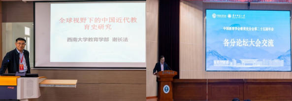 在分论坛上,博士后闫雪映以《红色童谣叙事与中国童年精神的建构——基于革命话语的分析》、博士生胡飞以《教材史研究:教材基础研究的历史面向》《早期马克思主义教育思潮探论——兼谈中国教育学话语体系的特色建构》、博士生郑思晴以《在传统与世界之间:张之洞的幼儿教育革新及其全球史意义》、博士生韩旭帆以《教育制度的国际传播与在地转化——以“小先生制”和导生制的比较研究为例》、博士生孙镭笑以《近代亚洲来华留学教育的历史考察(1840-1949)》、博士生郝悦以《从传承到革新:裴斯泰洛齐对自然主义教育思想的重塑》、硕士生付盈盈以《中外教育交流视域下民初社会教育的困境与探索(1912-1919)》、硕士生罗浩以《改革开放以来的留英教育——以“中英友好奖学金计划”为中心的考察》为题分别作了汇报。