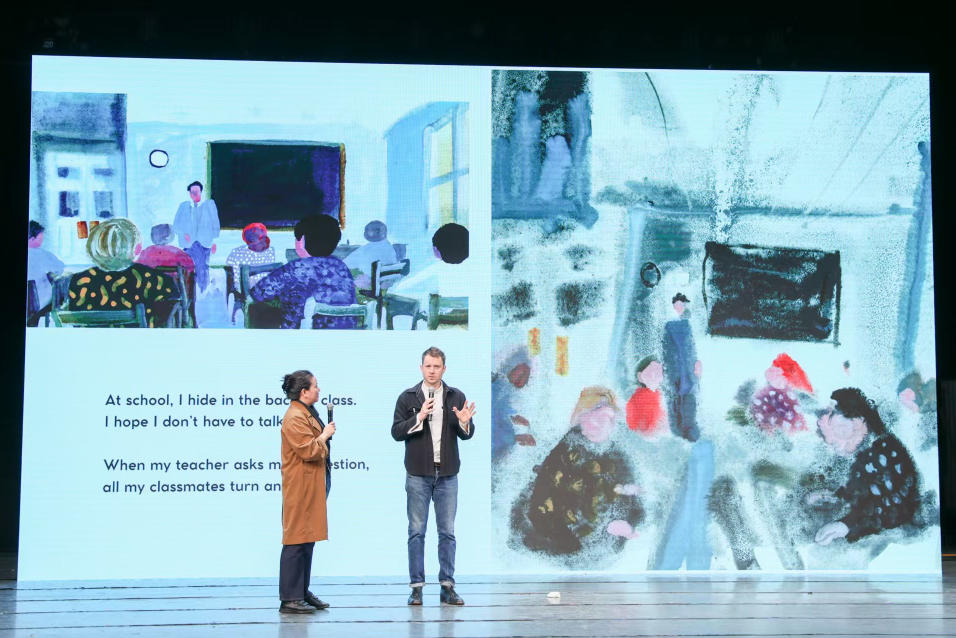 在国际视角分享环节,国际安徒生奖插画家奖得主西德尼·史密斯结合自身绘本创作经历,强调特殊儿童绘本需兼具情感温度与认知引导,既要贴合特殊儿童的认知特点,也要通过故事传递希望与力量。丰子恺儿童图画书奖组委会代表、启发文化总经理曲小侠女士分别发言,分享了奖项在推动特殊儿童优质绘本创作方面的努力,强调了启发文化六年推动特殊儿童阅读教育公益的核心是与儿童共同成长,从儿童身上获得力量与信念。