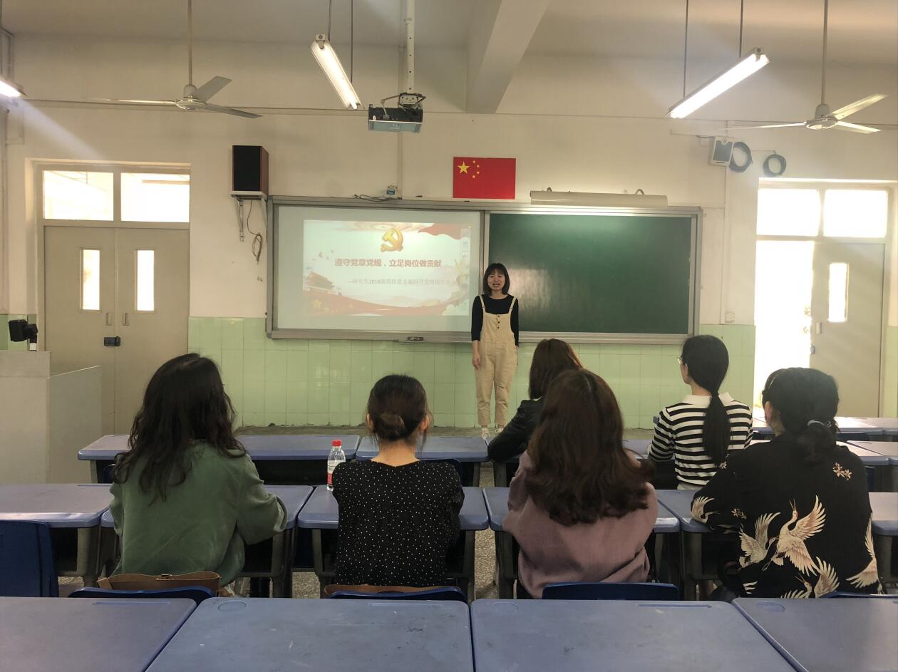 最后,支部宣传委员刘坤对本次学习讨论活动进行总结:我们现在的身份是实习老师,因此在平时的生活中应该像刚刚学习的文件一样,坚定理想信念,遵守党章党规,积极向周围的老师和同学学习。