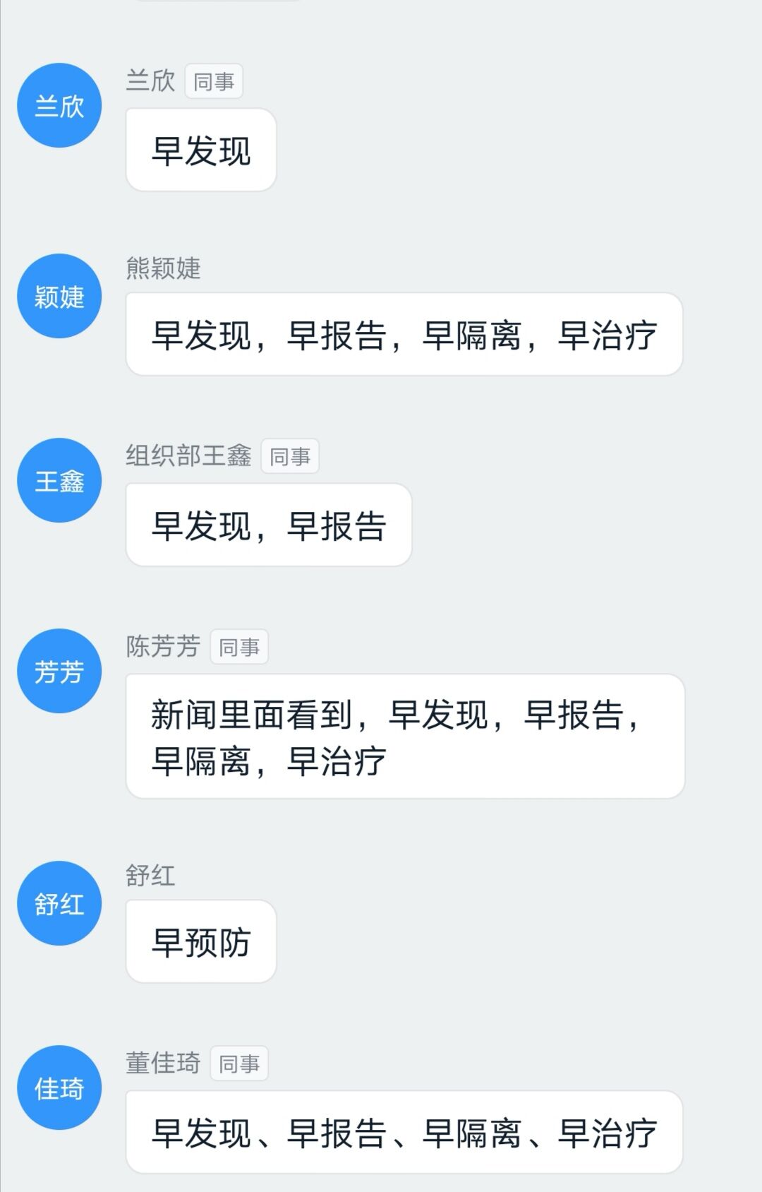 视频观看结束后,主持人发起了关于疫情防控知识的竞答活动,与会研究生干部们热情高涨,都积极在钉钉群里以文字或语音的形式进行竞答。视频观看结束后,主持人发起了关于疫情防控知识的竞答活动,大家热情高涨,都积极在钉钉群里以文字或语音的形式进行竞答。