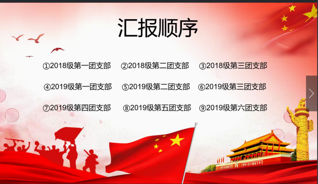 在汇报展示环节中,各支部通过PPT展示和文字解说的方式,分别从团支部一年来的组织建设、团员宣传教育、主题团日活动、团员示范作用以及取得的成就等方面进行了汇报。同时,各个支部也从制度完善,不足改进等方面对支部工作进行了反思,并展望了未来的发展。
