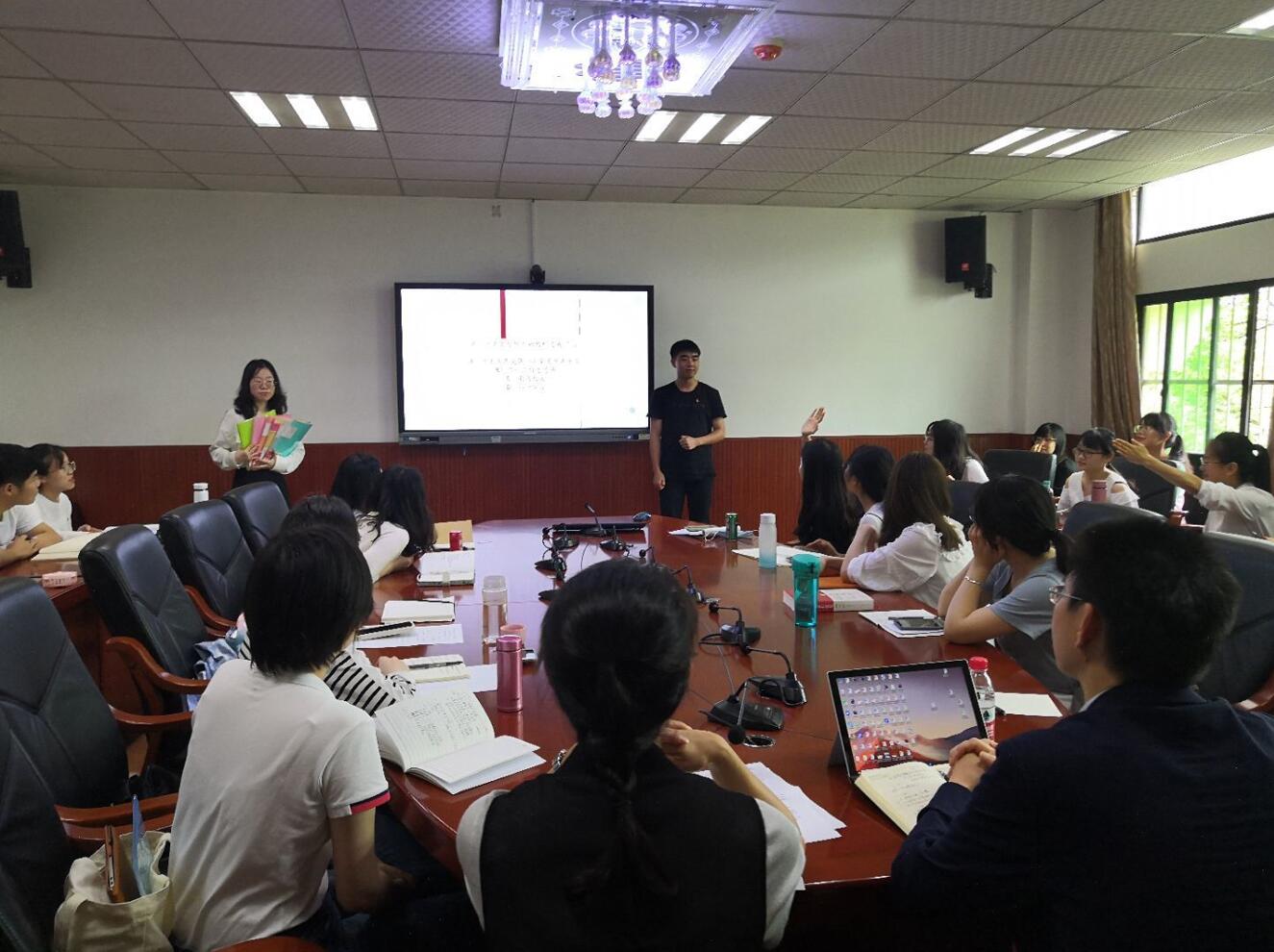 党日活动中,还开展了本科生一支部党史学习教育主题特色活动——党史阅读好书推荐及党史电影好片分享。第一党小组对推荐书目《文献中的百年党史》中精彩篇章和句段的亮点剖析让大家深切感受到开展党史学习教育,就是要以史为镜,以史明志。第四党小组由一段诙谐幽默的三人快板《伟大开端》开头,讲述中共一大召开时发生的小插曲的同时,带大家走进电影《建军大业》,共同回顾了中国共产党人独立领导武装斗争和创建革命队伍的艰难建军史。电影分享还设置了党史知识有奖竞猜环节,党员同志们踊跃抢答,寓教于乐,现场气氛热烈。